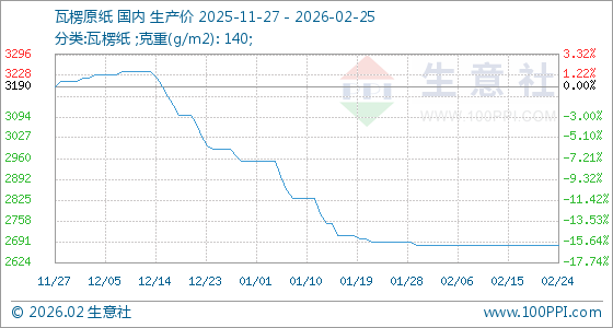 2月25日,生意社瓦楞原纸基准价为2680.00元/吨,与本月初持平。