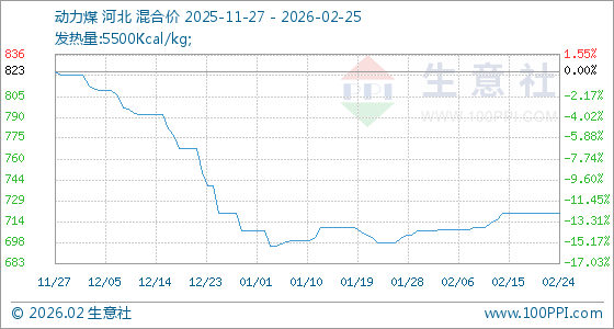 2月25日,生意社动力煤基准价为720.50元/吨,与本月初(707.50元/吨)相比,上涨了1.84%。