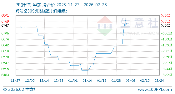 2月25日,生意社PP(纤维)基准价为6762.50元/吨,与本月初(6650.00元/吨)相比,上涨了1.69%。