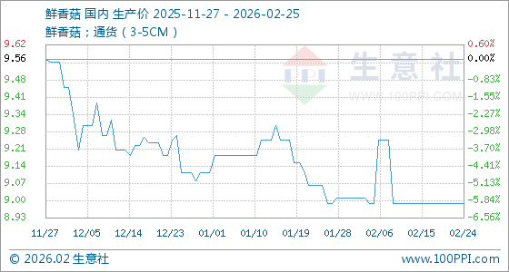 2月25日,生意社鲜香菇基准价为8.99元/公斤,与本月初(9.01元/公斤)相比,下降了0.22%。