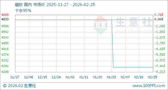 2月25日,生意社硼砂基准价为4283.33元/吨,与本月初持平。