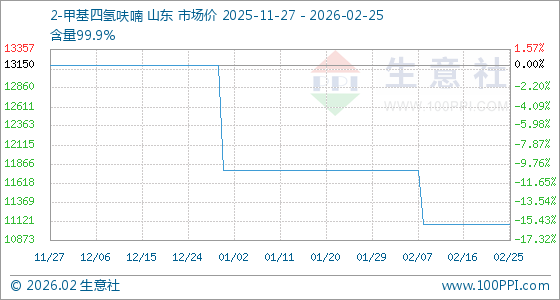 2月25日,生意社2-甲基四氢呋喃基准价为11080.00元/吨,与本月初(11780.00元/吨)相比,下降了5.94%。