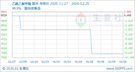 2月25日,生意社乙酰乙酸甲酯基准价为7900.00元/吨,与本月初持平。