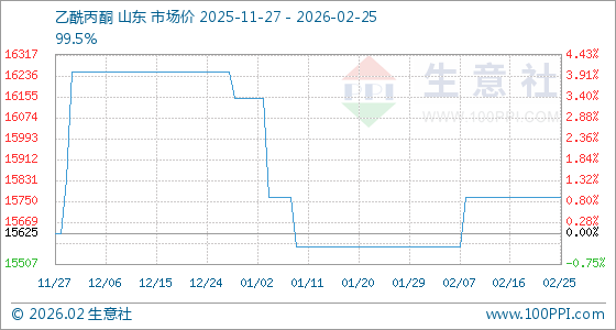 2月25日,生意社乙酰丙酮基准价为15766.67元/吨,与本月初(15575.00元/吨)相比,上涨了1.23%。
