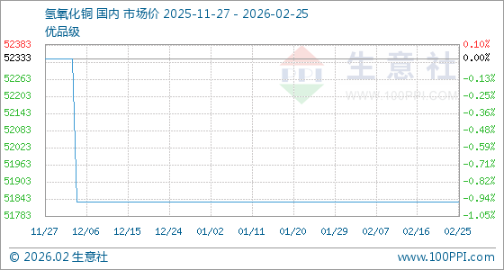 2月25日,生意社氢氧化铜基准价为51833.33元/吨,与本月初持平。