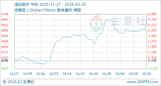 2月25日,生意社涤纶短纤基准价为6668.83元/吨,与本月初(6649.67元/吨)相比,上涨了0.29%。