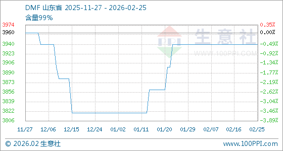 2月25日,生意社DMF基准价为3940.00元/吨,与本月初持平。