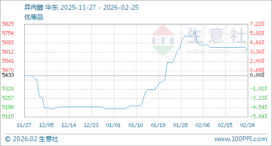 2月25日,生意社异丙醇基准价为5625.00元/吨,与本月初(5733.34元/吨)相比,下降了1.89%。