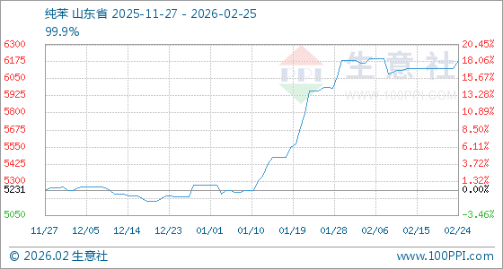 2月25日,生意社纯苯基准价为6186.67元/吨,与本月初持平。
