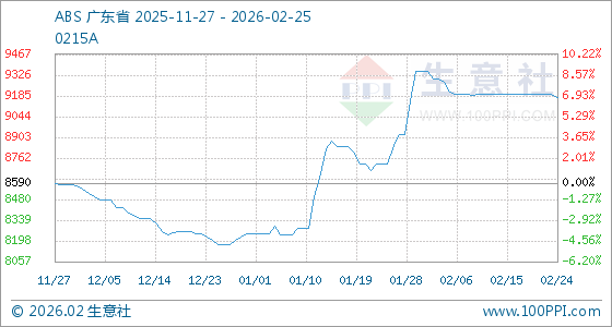 2月25日,生意社ABS基准价为9176.67元/吨,与本月初(9350.00元/吨)相比,下降了1.85%。