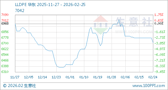 2月25日,生意社LLDPE基准价为6708.34元/吨,与本月初(6966.67元/吨)相比,下降了3.71%。