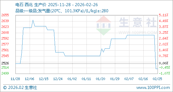 2月26日,生意社电石基准价为2512.00元/吨,与本月初(2592.00元/吨)相比,下降了3.09%。