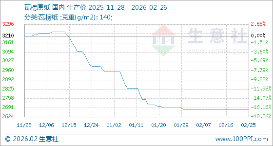 2月26日,生意社瓦楞原纸基准价为2680.00元/吨,与本月初持平。