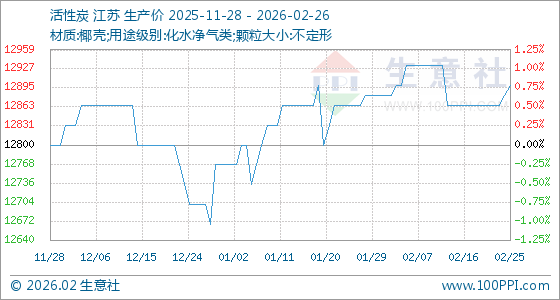 2月26日,生意社活性炭基准价为12900.00元/吨,与本月初(12883.33元/吨)相比,上涨了0.13%。