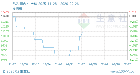 2月26日,生意社EVA基准价为10150.00元/吨,与本月初持平。