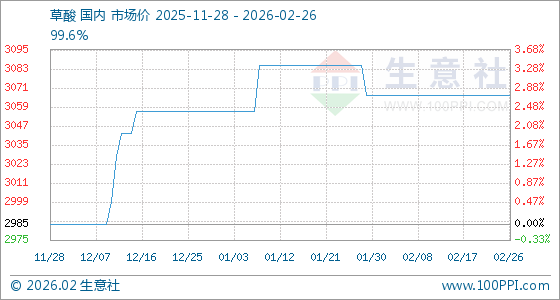 2月26日,生意社草酸基准价为3066.67元/吨,与本月初持平。