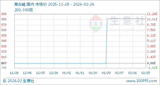 2月26日,生意社复合碱基准价为890.00元/吨,与本月初持平。