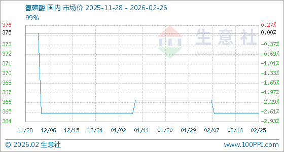 2月26日,生意社氢碘酸基准价为365.00元/吨,与本月初(366.67元/吨)相比,下降了0.46%。