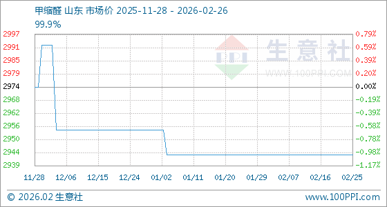 2月26日,生意社甲缩醛基准价为2944.00元/吨,与本月初持平。