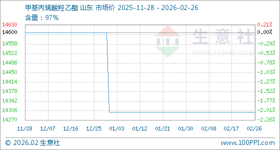 2月26日,生意社甲基丙烯酸羟乙酯基准价为14300.00元/吨,与本月初持平。