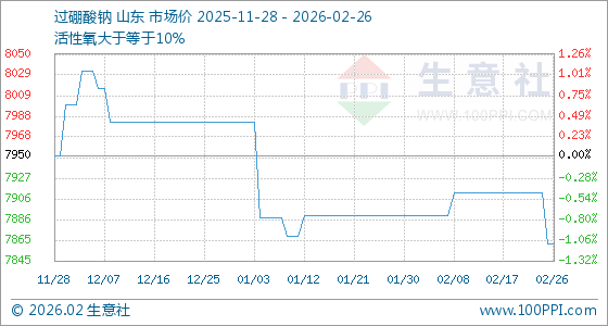2月26日,生意社过硼酸钠基准价为7862.50元/吨,与本月初(7890.00元/吨)相比,下降了0.35%。