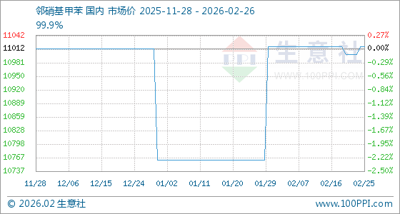 2月26日,生意社邻硝基甲苯基准价为11016.67元/吨,与本月初持平。