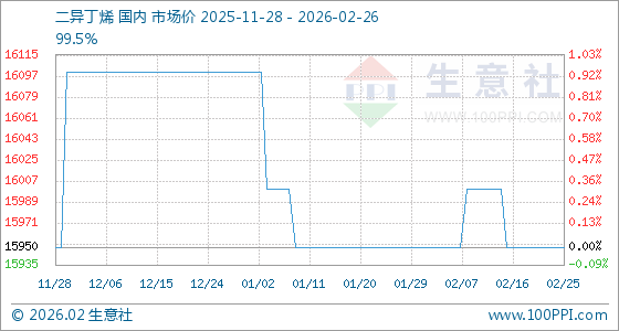 2月26日,生意社二异丁烯基准价为15950.00元/吨,与本月初持平。