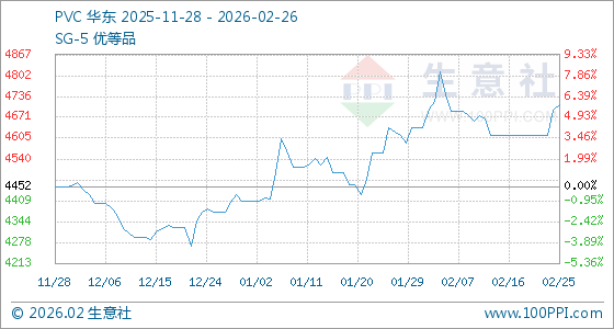 2月26日,生意社PVC基准价为4710.00元/吨,与本月初(4640.00元/吨)相比,上涨了1.51%。