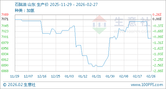 2月27日,生意社石脑油基准价为6996.67元/吨,与本月初(7000.00元/吨)相比,下降了0.05%。