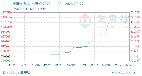 2月27日,生意社金属镨基准价为1135000.00元/吨,与本月初(935000.00元/吨)相比,上涨了21.39%。
