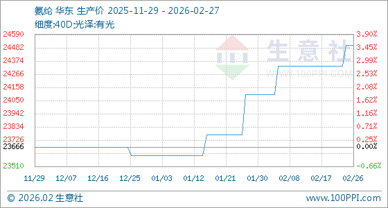 2月27日,生意社氨纶基准价为24500.00元/吨,与本月初(24100.00元/吨)相比,上涨了1.66%。