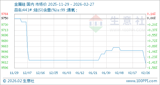 2月27日,生意社金属硅基准价为9610.00元/吨,与本月初(9650.00元/吨)相比,下降了0.41%。