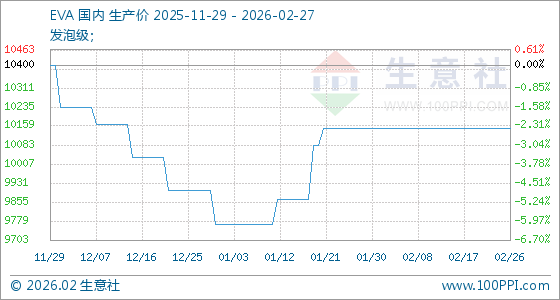 2月27日,生意社EVA基准价为10150.00元/吨,与本月初持平。