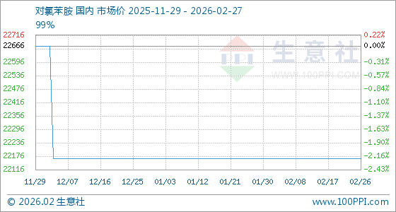 2月27日,生意社对氯苯胺基准价为22166.67元/吨,与本月初持平。