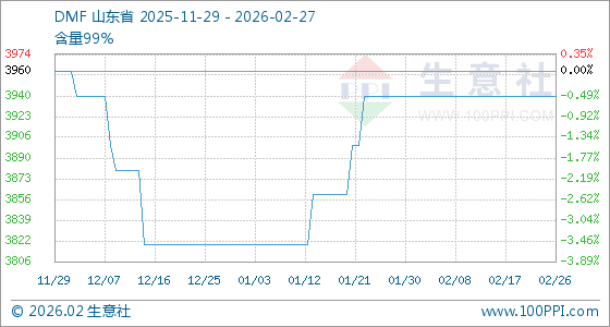 2月27日,生意社DMF基准价为3940.00元/吨,与本月初持平。