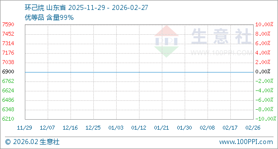 2月27日,生意社环己烷基准价为6900.00元/吨,与本月初持平。