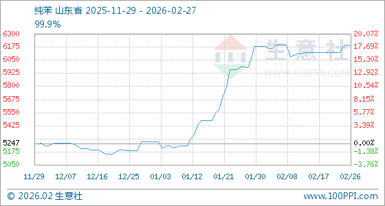 2月27日,生意社纯苯基准价为6193.33元/吨,与本月初(6186.67元/吨)相比,上涨了0.11%。