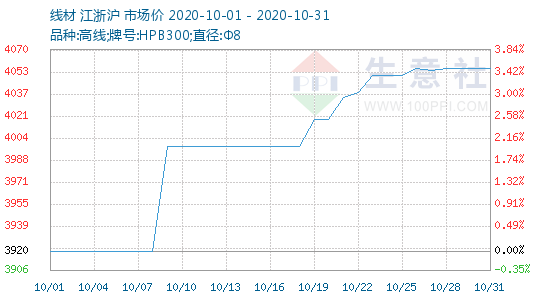 10月20日,中天钢铁出台2020年10月下旬建材价格调整政策,螺纹钢价格上涨50元,高线价格上涨100元,盘螺价格上涨100元。