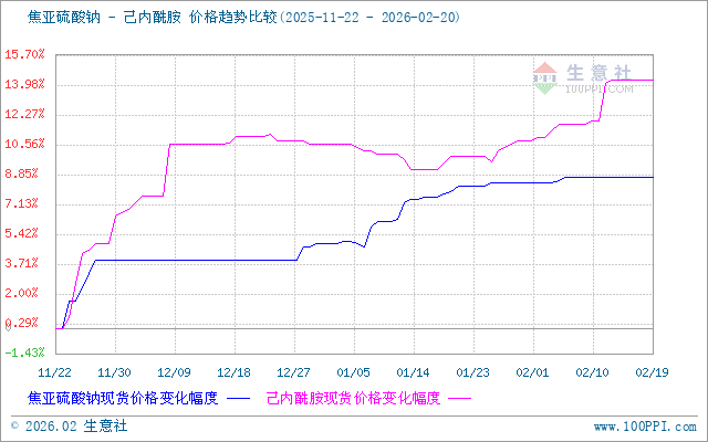 焦亚硫酸钠与己内酰胺价格走势比较图