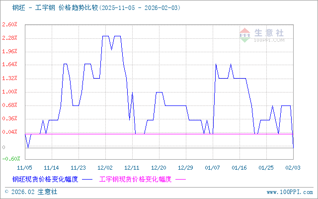 钢坯与工字钢价格走势比较图