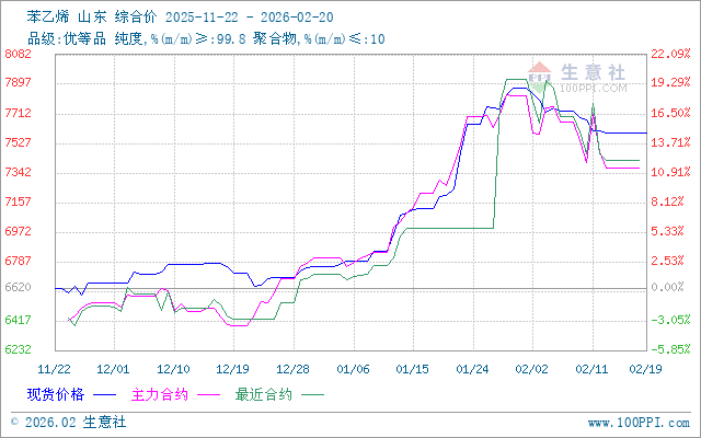 - 2月11日生意社苯乙烯基准价为7678.00 02-11