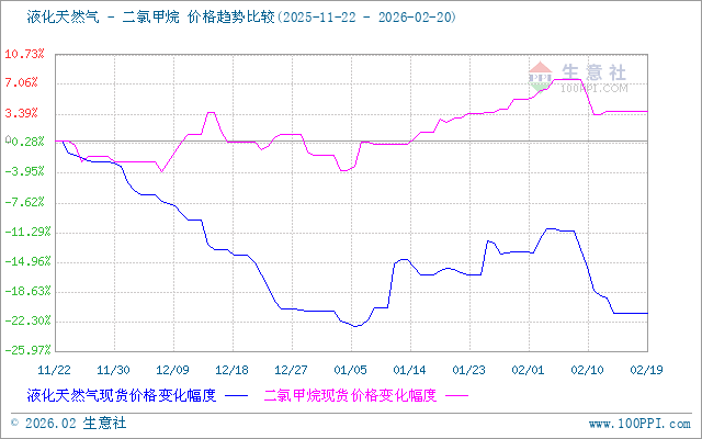 液化天然气与二氯甲烷价格走势比较图