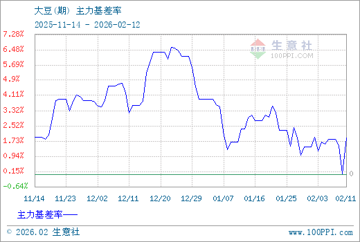 注: 1、从2025-11-14 至 2026-02-12期间,豆一主力基差最大值为291.00,最小值为-116.00。