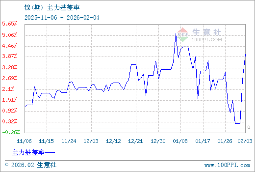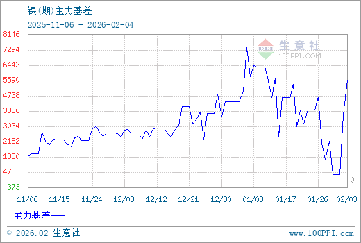 注: 1、从2025-11-06 至 2026-02-04期间,镍主力基差最大值为7436.67,最小值为336.67。