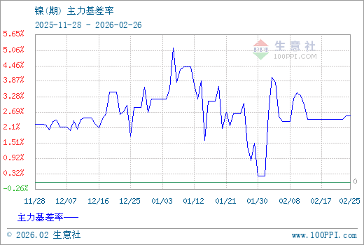 注: 1、从2025-11-28 至 2026-02-26期间,镍主力基差最大值为7436.67,最小值为336.67。