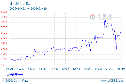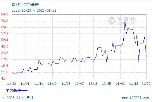 注: 1、从2025-10-23 至 2026-01-21期间,镍主力基差最大值为7436.67,最小值为1053.33。