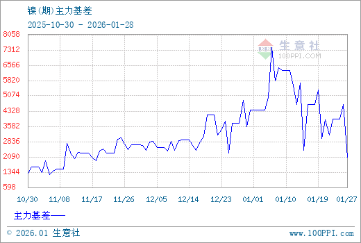 注: 1、从2025-10-30 至 2026-01-28期间,镍主力基差最大值为7436.67,最小值为1220.00。