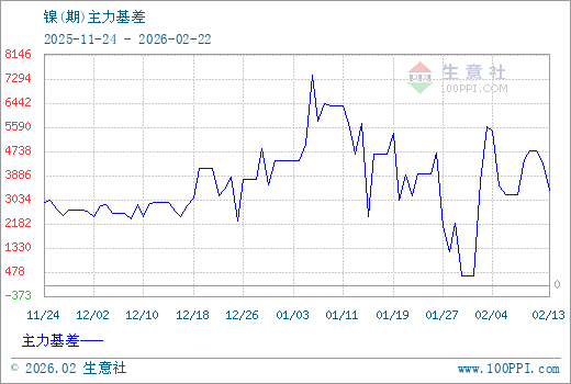 注: 1、从2025-11-24 至 2026-02-22期间,镍主力基差最大值为7436.67,最小值为336.67。