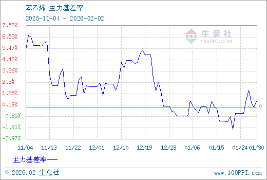 注: 1、截至 2026-01-30,苯乙烯 180日平均基差率为3.14%,90日平均基差率为1.95%。
