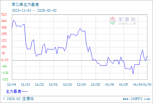 注: 1、从2025-11-04 至 2026-02-02期间,苯乙烯主力基差最大值为453.00,最小值为-151.00。